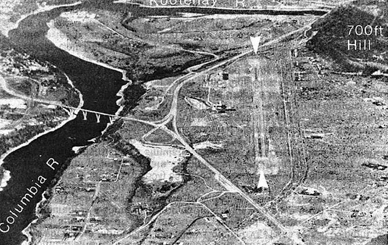 Like many other sites in the southern BC mountain ranges, YCG began life as an emergency field that would serve as an alternate for Crescent Valley and Columbia Gardens (at Trail).  The site chosen in the late 1930�s to the southeast of the town was at the time occupied by several Doukhobor communes which had to be relocated to accommodate the airport.