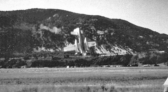 The Fire Centre experienced one significant and memorable tragedy.  This extraordinary photo records the last split second of Conair Grumman CS2F-1 Firecat C-GHQZ on July 25, 1978 at Castlegar airport.  The aircraft had completed a demonstration drop of fire suppressant when it entered a high speed stall, inverted and crashed, killing the pilot.