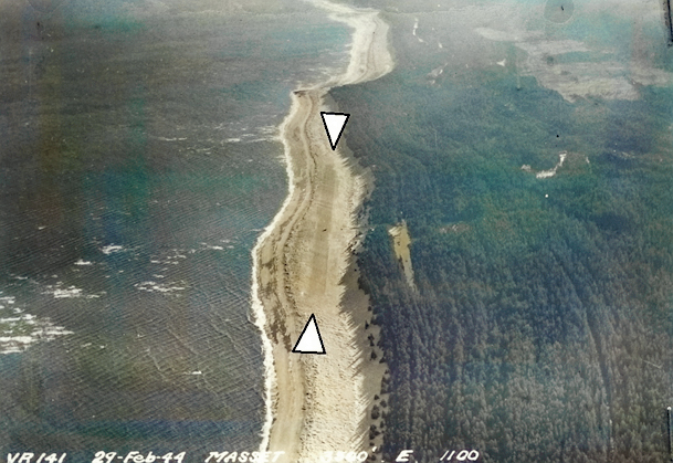 packed sand foreshore east of Masset. He proposed that a