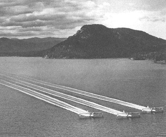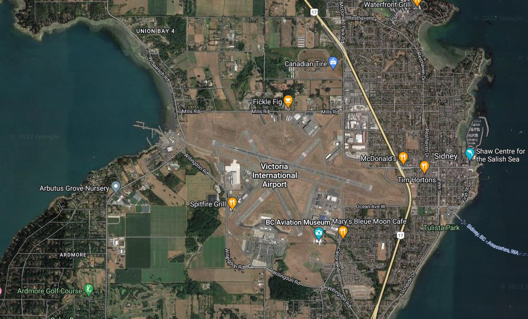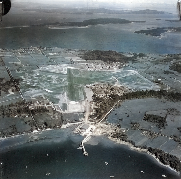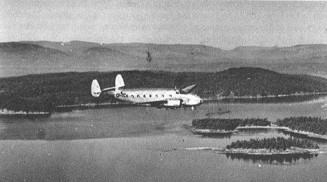Lockheed Lodestar is shown flying over the Gulf Islands. At