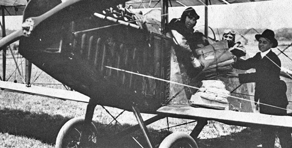 Willows Aerodrome. Lt. G.K. Trim is shown unloading mail,